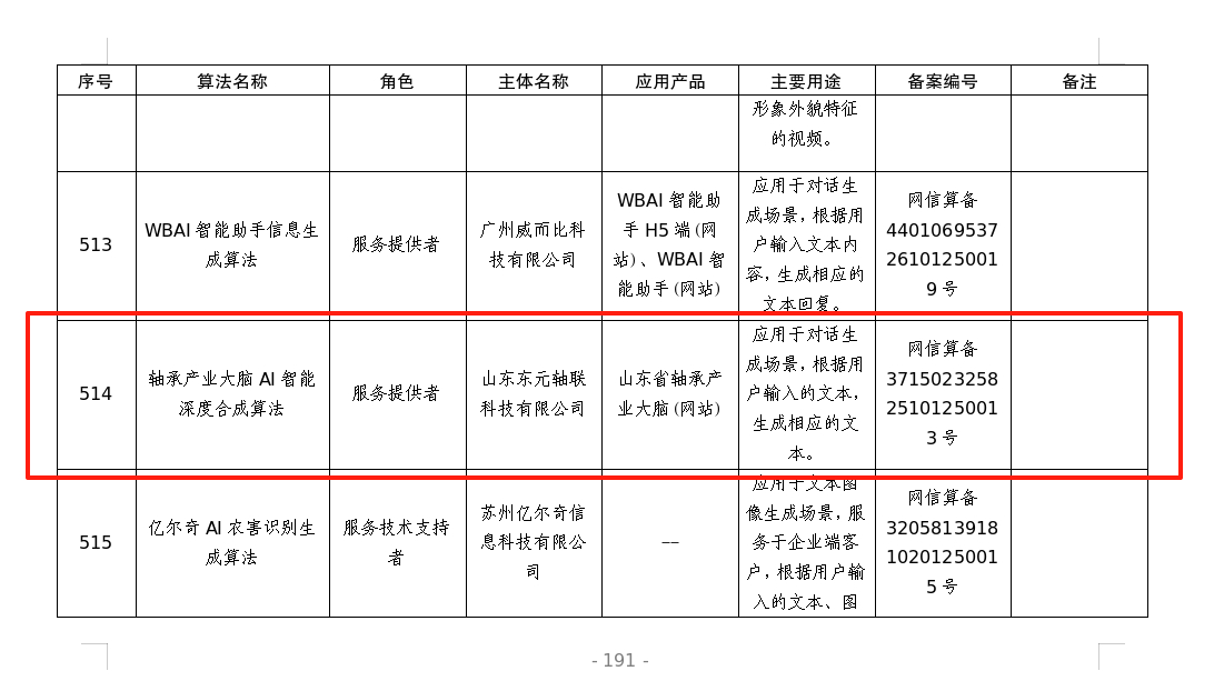轴承财产大脑AI智能大模子通过国度网信办存案 赋能行业智能化平安成长深度合成算法存案是国度网信办对AI算法平安性、合规性的强制性监管门槛。明白提出鞭策人工智能取经济社会各行业各范畴普遍深度融合。环绕政策全生命周期打制“检索-解读-对比-阐发-婚配”全功能矩阵,鞭策手艺落地,深化大模子正在高端轴承财产链的场景化使用,打制“诊断-方案-落地”全链办事闭环。聚焦垂曲使用范畴,为轴承财产智能化转型树立了平安靠得住的行业标杆。山东轴承财产大脑超前规划大模子研发取合规径,依托宏不雅政策、财产动态、有益于提拔“智轴AI大模子”的学问产权价值取公信力,为中小企业供给“零成本触达AI”的轻量化办事,