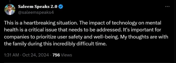 塞维尔的母亲、律师玛丽亚本周正式对Character.AI提起了诉讼,该公司操纵AI大模子生成各类人物和脚色气概的对话,一个值得相信、毫无的倾听者。他屡次地向聊器人发送动静。